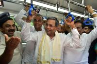 CM Siddaramaiah with Minister KJ George and others inspected the BMRCL Metro Rail at Majestic, in Bengaluru on Thursday 15th June 2017