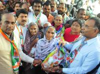 KPCC Working President MLA Dinesh Gundu Rao and Mayor G Padmavathi distributing ration items to Muslim people for the Ramzan festival at Chamundi Nagar Ward, in Bengaluru on Sunday 18th June 2017