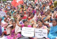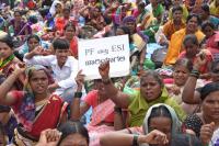 Members of Karnataka State Government Hostels Contract Workers and Employees staged a protest for PF and ESI and other demands at Freedom Park, in Bengaluru on Wednesday 28th June 2017