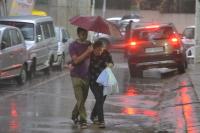 People seen taking cover under umbrellas as rains lash Bengaluru City, in Bengaluru on Wednesday 5th July 2017