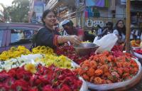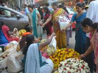 People seen shopping on the eve of Varamahalakshmi pooja festival at Malleswaram market, in Bengaluru on Wednesday 2nd August 2017