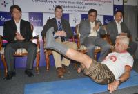 | Event Details: | SK Srinivasan, 83 year old, who underwent both knee replacement surgeries using the navigational technique showcasing his yoga skills, during the Sakra World Hospital and Dr Chandrashekar P, as he becomes the first doctor in Karnataka to conduct more than 1000 minimally invasive knee replacements through navigational surgery, the press conference was held at Hotel Chancery, in Bengaluru on Wednesday 9th August 2017 |