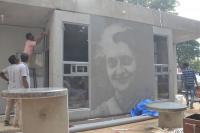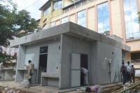 Workers seen giving finishing touches to Indira Canteen at Miller Road, in Bengaluru on Saturday 12th August 2017
