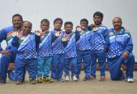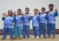 | Event Details: | Dwarf athletes of Karnataka State seen displaying their medals after participating in the 7th World Dwarf Games 2017, held in Canada, seen at a press conference at Press Club, in Bengaluru on Saturday 19th August 2017 |