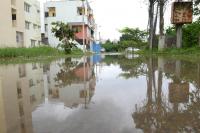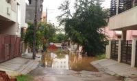 Rain waterlogged at Arekere, Bannerghatta Road due to last night heavy rain in the city, in Bengaluru on Thursday 24th August 2017