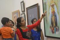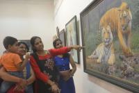 Visitors seen enjoying the painting exhibition of Wet Canvas, The Art Group at Chitrakala Parishat , in Bengaluru on Friday 1st September 2017