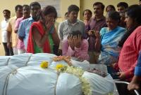 | Event Details: | Relatives of Bharati, Ramesh and Jagadish grieving at mortuary at Victoria Hospital, who died last night after a huge tree fell on their car at Minerva Circle after heavy rainfall, in Bengaluru on Saturday 9th September 2017 |