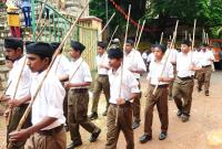 RSS members took out a march at Nandini Layout and Malleswaram, in Bengaluru on Sunday 17th September 2017