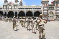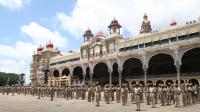 Police personnel rehearsal for the upcoming Dasara 2017 Festival Celebration at Mysore Palace, in Mysuru on Wednesday 20th September 2017
