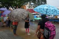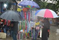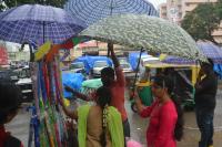 People seen buying umbrellas at Shivajinagar, as heavy rains continued to lash Bengaluru City, in Bengaluru on Friday 6th October 2017