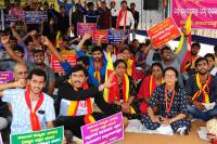 | Event Details: | Members of Karnataka Vidyarthi Parishat staged a protest against the central government for neglecting Kannada language in the Banking sector, the protest was held at Freedom Park, in Bengaluru on Tuesday 10th October 2017 |
