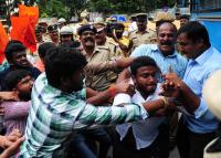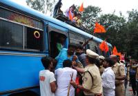 Members of ABVP staged a protest to save Karnataka State Open University (KSOU) at Anand Rao Circle the protestors were later taken in preventive custody and were released later, in Bengaluru on Friday 13th October 2017