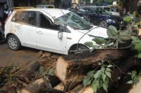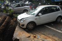 2 cars were damaged after a tree uprooted and fell on them after the last night heavy rainfall in Chamarajpet, in Bengaluru on Saturday 14th October 2017