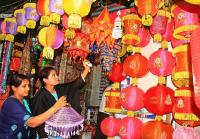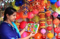 People shopping deepavali decorative items for the upcoming Diwali Festival at Malleshwaram, in Bengaluru on Sunday 15th October 2017