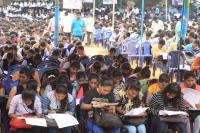 | Event Details: | College students writing question and answer during “Quiz Competition” organized by National Students Union of India on the occasion of 100th birth anniversary of Former PM Indira Gandhi at Mahalakshmi Layout, in Bengaluru on Friday 27th October 2017 |