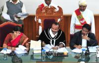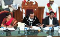 Mayor Sampath Raj with Deputy Mayor Padmavathi Narasimha Murthy and BBPM Commissioner Manjunath Prasad during a BBMP council meeting at BBMP, in Bengaluru on Tuesday 31st October 2017