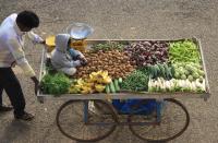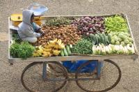 Young Vegetable Businessman on a Push Cart