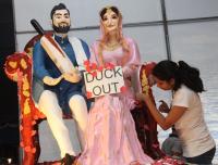 Visitors enjoying the cake depicting newlywed Indian Cricketer Virat Kohli and his wife Anushka Sharma at the 43rd Annual cake show at St Josephs Indian high school grounds, in Bengaluru on Thursday 21st December 2017
