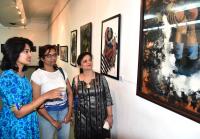 | Event Details: | Visitors going around the “Quinary Show” the painting exhibition of Shyamala Guruprasad, Manaswini L Bhat, Divya M G, Thyada Shamsudheen and Raghotham Harish at Venkatappa Art Gallery, in Bengaluru on Monday 1st January 2018 |