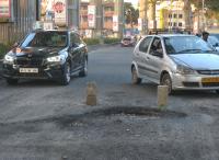 Deep crater like potholes on the busy Ulsoor Road have causing problems to the motorists, in Bengaluru on Monday 1st January 2018