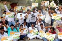 | Event Details: | Supporters of DK Shivakumar protesting against MLA CP Yogeshwar for his remarks on DK Shivakumar, the protest was held at Anand Rao Circle, in Bengaluru on Friday 5th January 2018 |