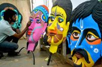 Artistes preparation work for the Chitra Sante 2018 at Chitrakala Parishat, in Bengaluru on Friday 5th January 2018