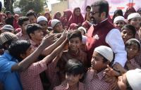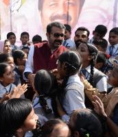 MLA NA Harris celebrating his birthday with School students near Garuda Mall, in Bengaluru on Thursday 11th January 2018