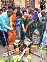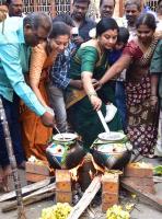 MLC Tara with Actress Sudharani and Ravi preparing the pongal during Sankranti festival celebrations at Coxtown, in Bengaluru on Sunday 14th January 2018