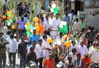 MLA Dinesh Gundurao and congress leaders riding bullock cart during Sankranti celebrations at Okalipuram, in Bengaluru on Monday 15th January 2018