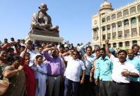 Members of Karnataka State Government Employees Association staged a protest to implement old pension schemes and various others demands in front of Gandhi Statue at Vidhan Soudh, in Bengaluru on Thursday 18th January 2018