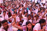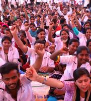 Members of Karnataka State Operation Theatre Technologist Union protesting and demanding to fulfill their various demands at Freedom Park, in Bengaluru on Friday 2nd February 2018