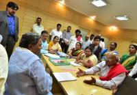 CM Siddaramaiah with Minister Tanveer Sait held a meeting with the leaders of protesting members of Karnataka State Akshara Dasoha Mid Day Meal Cookers Federation , in Bengaluru on Friday 9th February 2018
