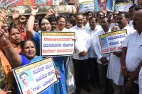 Members of BJP Bengaluru City led by MP PC Mohan protesting against BJP Leader Kadiresh murder at Good shed Road, in Bengaluru on Tuesday 13th February 2018