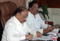 Ministers KJ George and Roshan Baig addressing a meeting on Change of Land Use (CLU) guidelines at Vidhan Soudha, in Bengaluru on Monday 19th February 2018