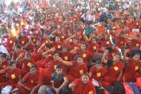 Members of contract and daily laborers protesting and demanding to fulfill their various demands at Freedom Park, in Bengaluru on Wednesday 21st February 2018