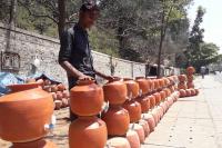 Mud pots in demand for Summer Season at Palace road, in Bengaluru on Wednesday 21st February 2018