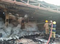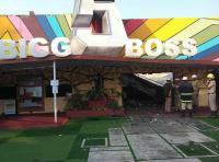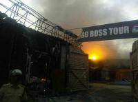 Firemen trying to douse off the fire which had caught in Innovative film city at Bidadi, on Thursday 22nd February 2018