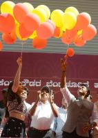 Actress Tamannaah Bhatia and Actor Puneeth Rajkumar during inauguration of Pothys showroom, in Bengaluru on Monday 26th February 2018