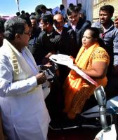 Chief Minister Siddaramaiah distributed to RETRO FITTED TWO WHEELERS to the Physically Challenged people at Vidhana Soudha, in Bengaluru on Tuesday 27th February 2018
