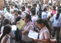 2nd Puc Students last minute preparation outside SJRC College Exam centre, which commenced today, in Bengaluru on Thursday 1st March 2018