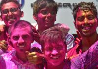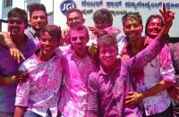 Students playing with color on the occasion of Holi festival at Jain University, in Bengaluru on Friday 2nd March 2018