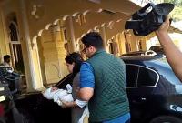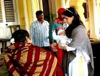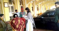 Newborn Prince of Mysuru Aadyaveer Narasimharaja Wadiyar being carried by mother Trishika Kumari, accompanied by Yaduveer Krishnadatta Chamaraja Wadiyar on their arrival at Mysuru Palace on Friday 2nd March 2018