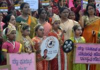 Members of Kittur Rani Chennamma Women Development and Protection Organisation participated in the International Womens Day program at Town Hall, in Bengaluru on Thursday 8th March 2018