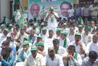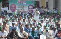 JDS Leaders and members protesting against the recent attack on Lokayukta Justice Vishwanatha Shetty at Town Hall, in Bengaluru on Friday 9th March 2018