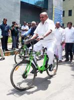 Minister HM Revanna inaugurated the rent bike and bicycles for the public at Shanti Nagar Bus Stand, in Bengaluru on Wednesday 14th March 2018