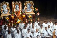 Devotees performing bhajans during “Viveka Rajata” programme at Kuvempu Kalakshetra, in Bengaluru on Saturday 17th March 2018