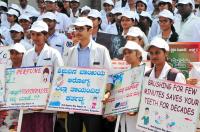 Students of Government Dental College and Research Institute Bangalore participated in a awareness campaign on Oral Hygiene on the occasion World Oral Health Day at Town Hall, in Bengaluru on Tuesday 20th March 2018