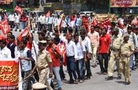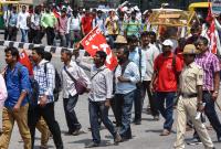 Members of Karnataka State Electricity Workers Federation participated in a protest rally to fulfill their various demands from Bengaluru City Railway Station to Freedom Park, in Bengaluru on Thursday 22nd March 2018