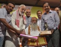 | Event Details: | MS Sathyu with NR Vishukumar and others presented Lifetime Achievement Award to Prasanna Heggodu, on the occasion of “Vishwarangabhumi Day” celebration program at Nayana, in Bengaluru on Tuesday 27th March 2018 |