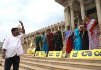 | Event Details: | Folk artistes during Video shot from Karnataka election commission to create awareness in public to cast their votes for the forthcoming Assembly election , Vidhana Soudha, Video song shot by Film Director Yograj Bhat for Karnataka Election Commission, in Bengaluru on Friday 30th March 2018 |